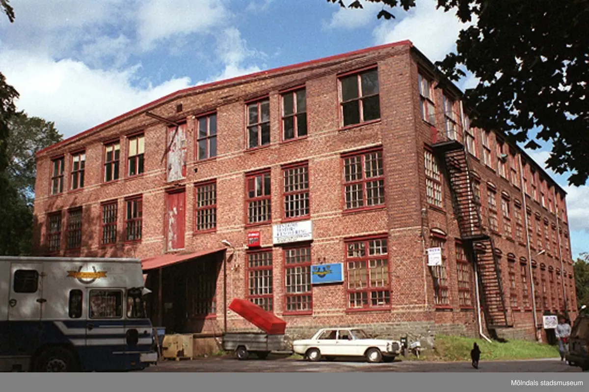 Vy från väster på Werners fabriker, Annestorp 3:30 i Lindome, 1998-08-19. Relaterat motiv: 2004_0048.