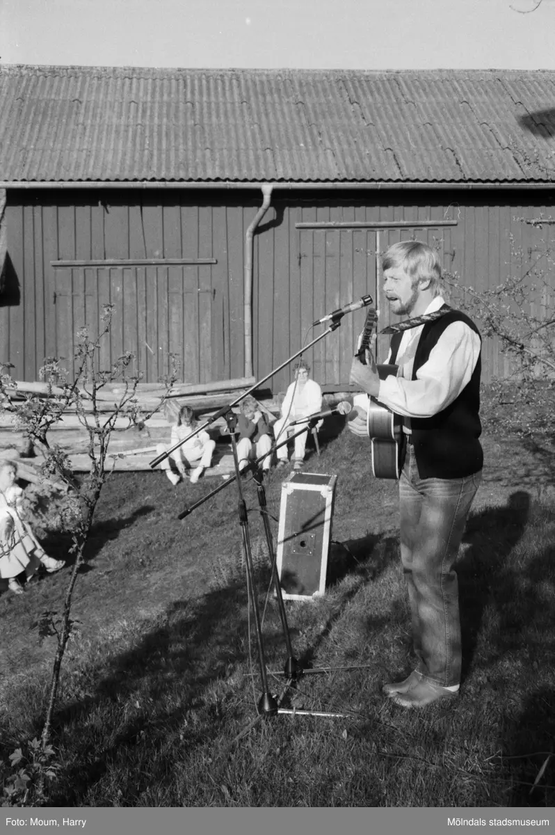 Årets första sommarkafé på Börjesgården i Hällesåker, år 1985. Trubadur Ingvar Gunnarsson underhåller.