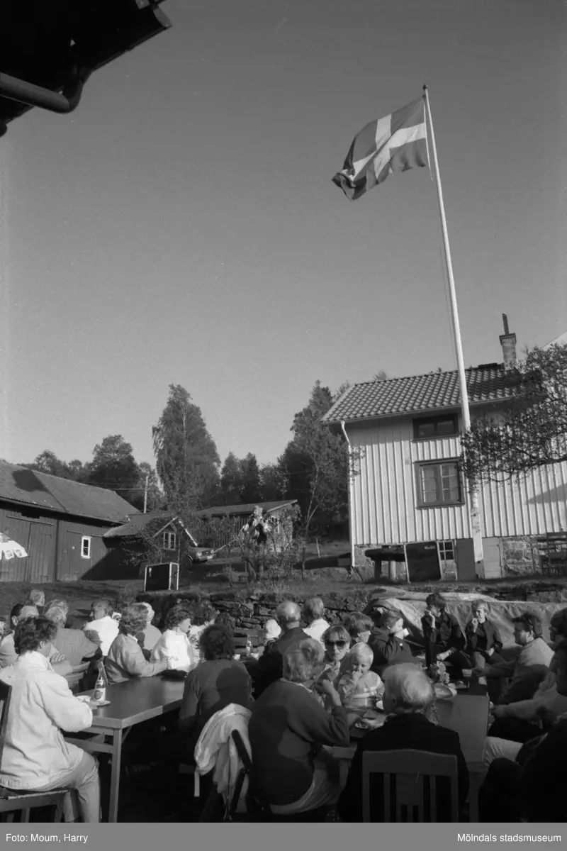 Årets första sommarkafé på Börjesgården i Hällesåker, år 1985. Trubadur Ingvar Gunnarsson underhåller.