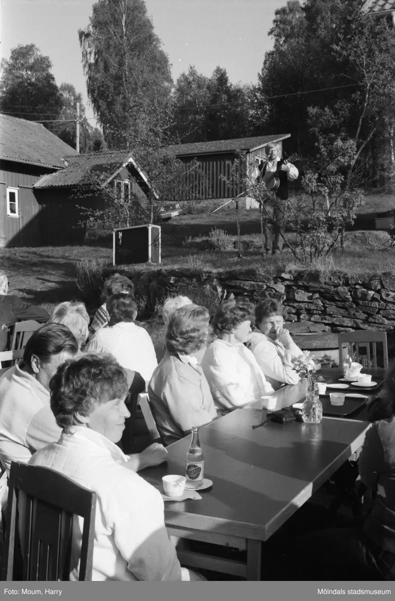 Årets första sommarkafé på Börjesgården i Hällesåker, år 1985. Trubadur Ingvar Gunnarsson underhåller.