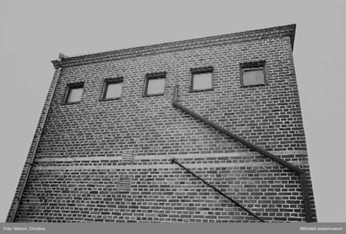 Werners fabriker i Annestorp, Lindome, hösten 1994. Byggnadsdetaljer: Fönster och stuprör.