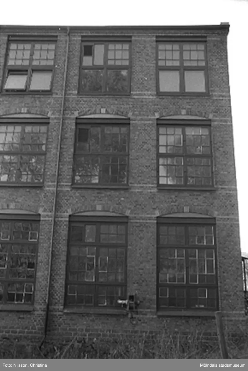Werners fabriker i Annestorp, Lindome, hösten 1994. Byggnadsdetaljer: Fönster och stuprör.