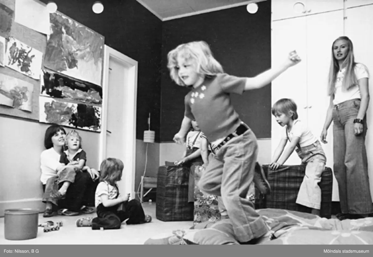 Barn och fröknar som leker på golvet. Holtermanska daghemmet maj 1975.