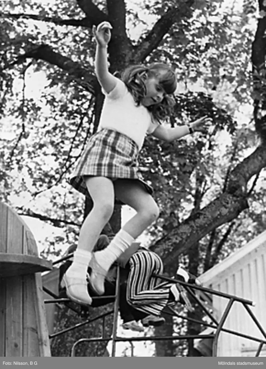 Barn leker vid en klätterställning. Holtermanska daghemmet juni 1973.