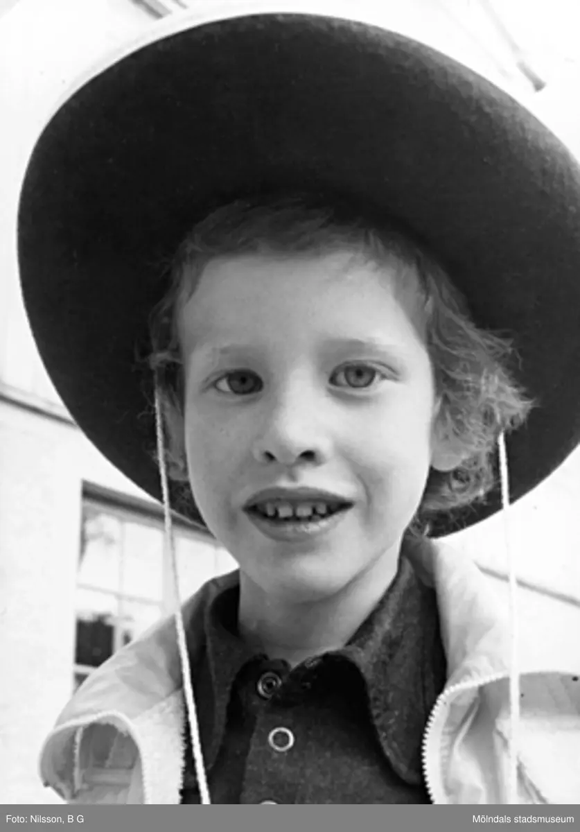 En pojke i cowboyhatt. Holtermanska daghemmet juni 1974.