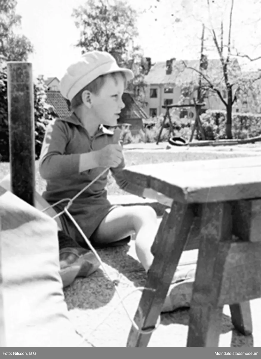 En pojke som sitter utomhus. Holtermanska daghemmet, okänt årtal.