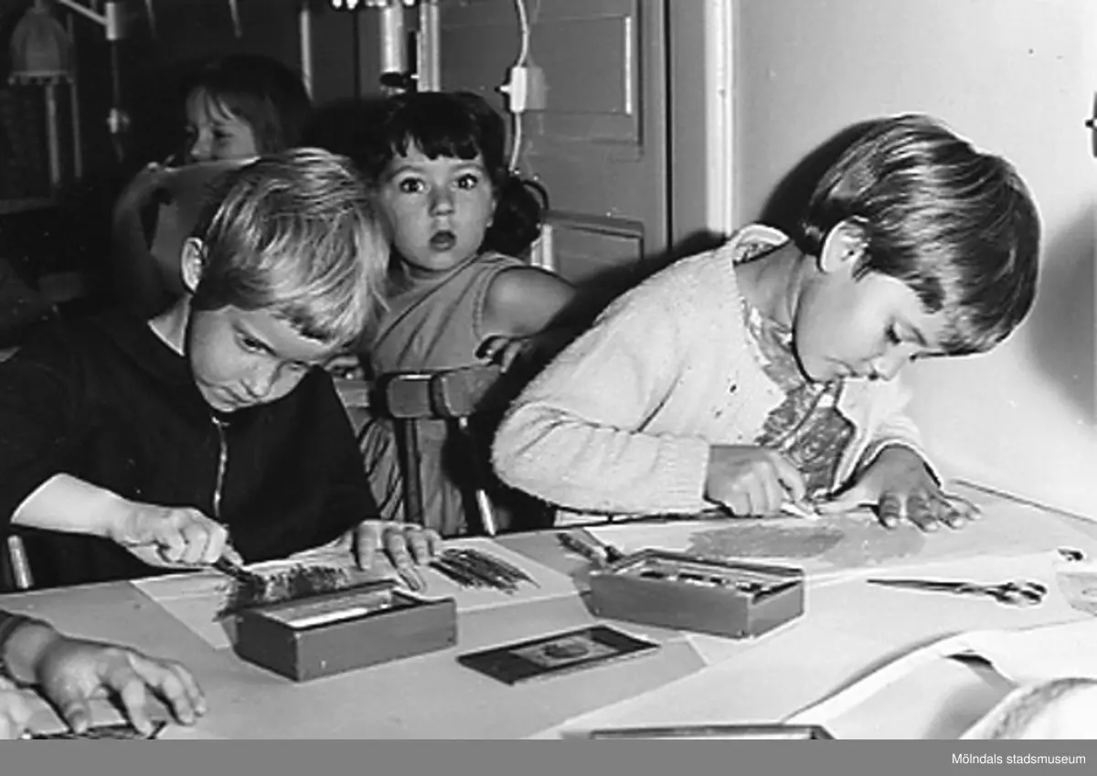 Några barn som pysslar, ritar och målar vid Holtermanska daghemmet 1953.