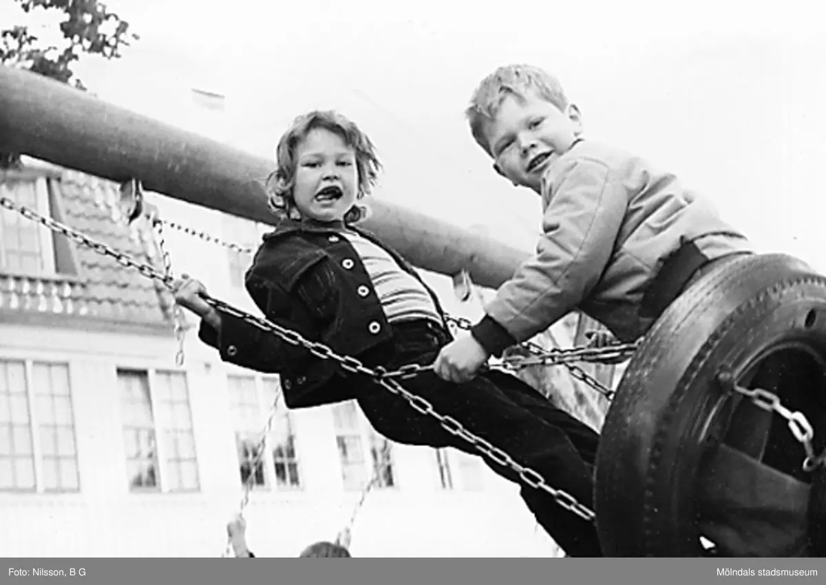Två pojkar gungar. Holtermanska daghemmet juni 1973.