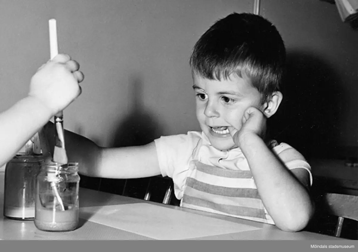 Två barn som målar med penslar vid Holtermanska daghemmet 1953.