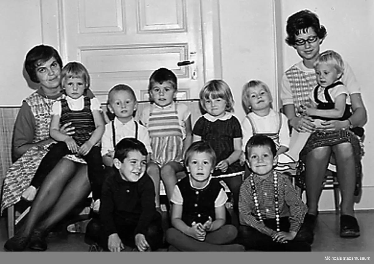 Grupporträtt av barn och lärarinnor vid Holtermanska daghemmet 1953.