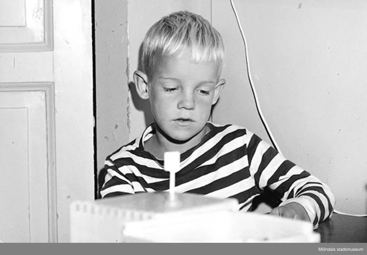 En pojke som leker inomhus vid Holtermanska daghemmet 1953.
