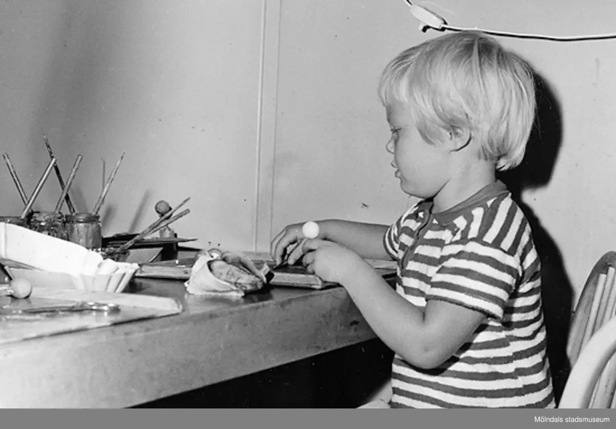 Ett barn målar vid ett bord. Holtermanska daghemmet 1953.