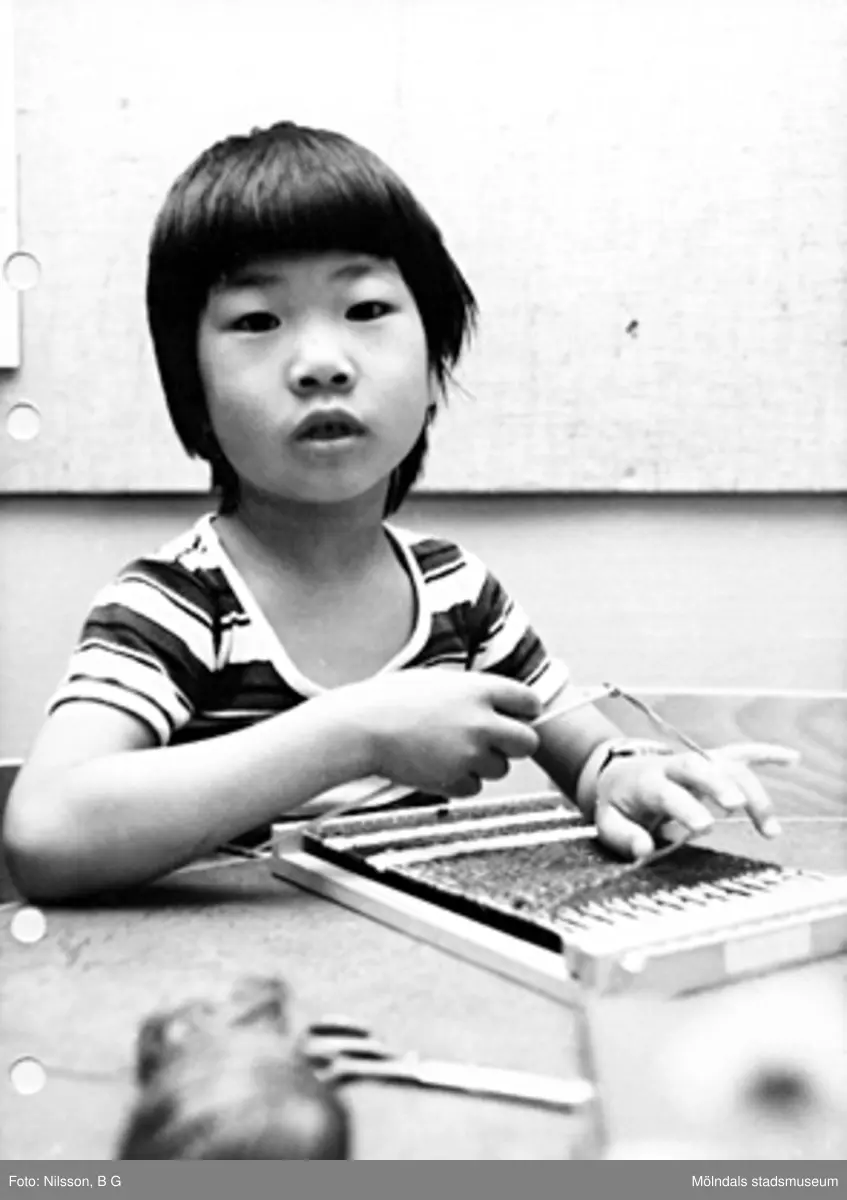 En pojke som väver. Holtermanska daghemmet maj 1975.