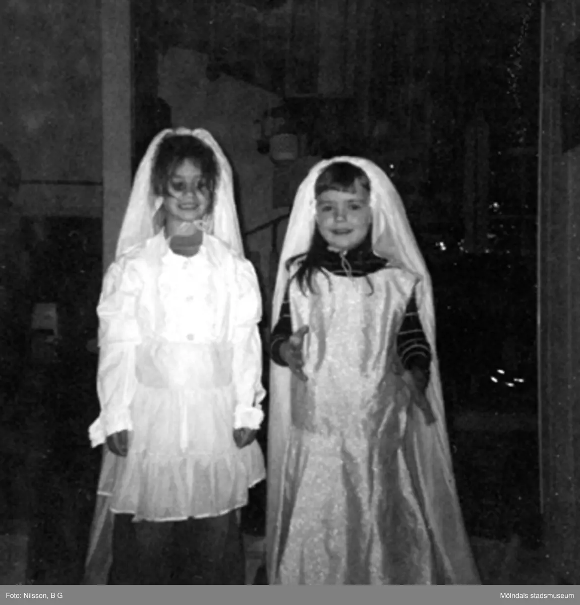 Två flickor utklädda till "brudar". Holtermanska daghemmet 1973.