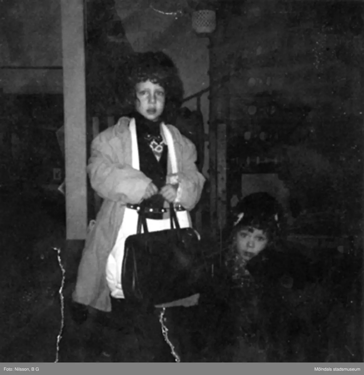 Två utklädda barn vid Holtermanska daghemmet 1973. Fotografiet är skadat på två ställen.