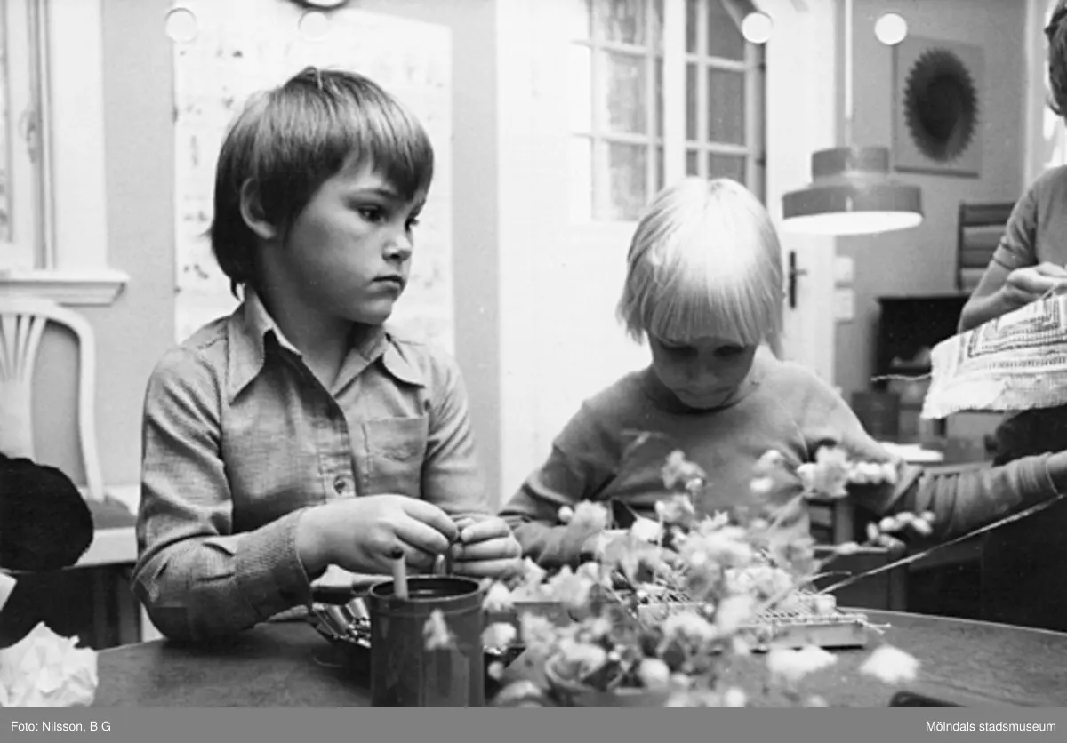 Två lekande barn. Holtermanska daghemmet maj 1975.