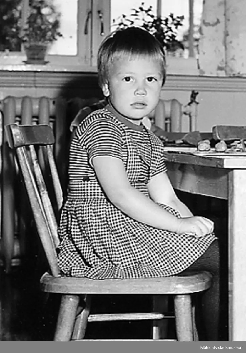 En flicka som sitter på en stol vid Holtermanska daghemmet 1953.