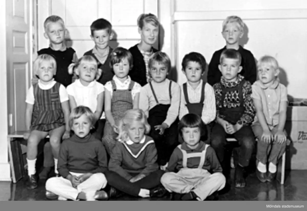 Grupporträtt på lärarinnan och alla barnen vid Holtermanska daghemmet 1953.