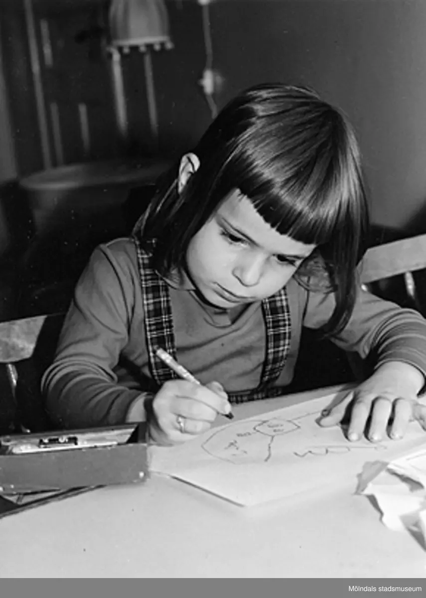 En flicka som ritar vid Holtermanska daghemmet 1953.