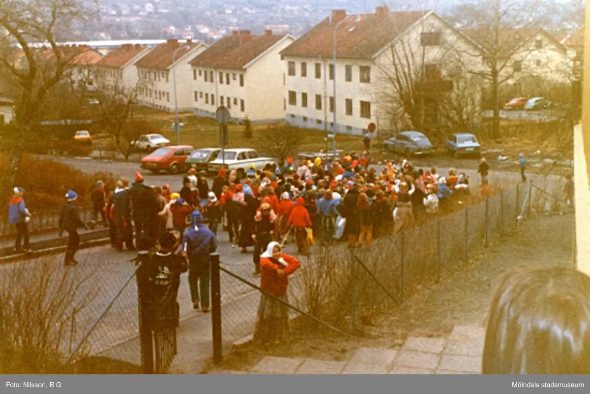 En barngrupp utomhus. Holtermanska daghemmet 1973.