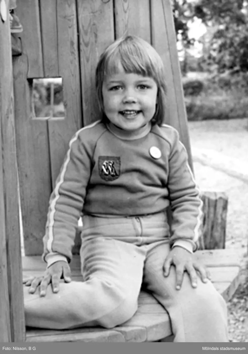 Ett barn som leker utomhus. Holtermanska daghemmet juni 1974.