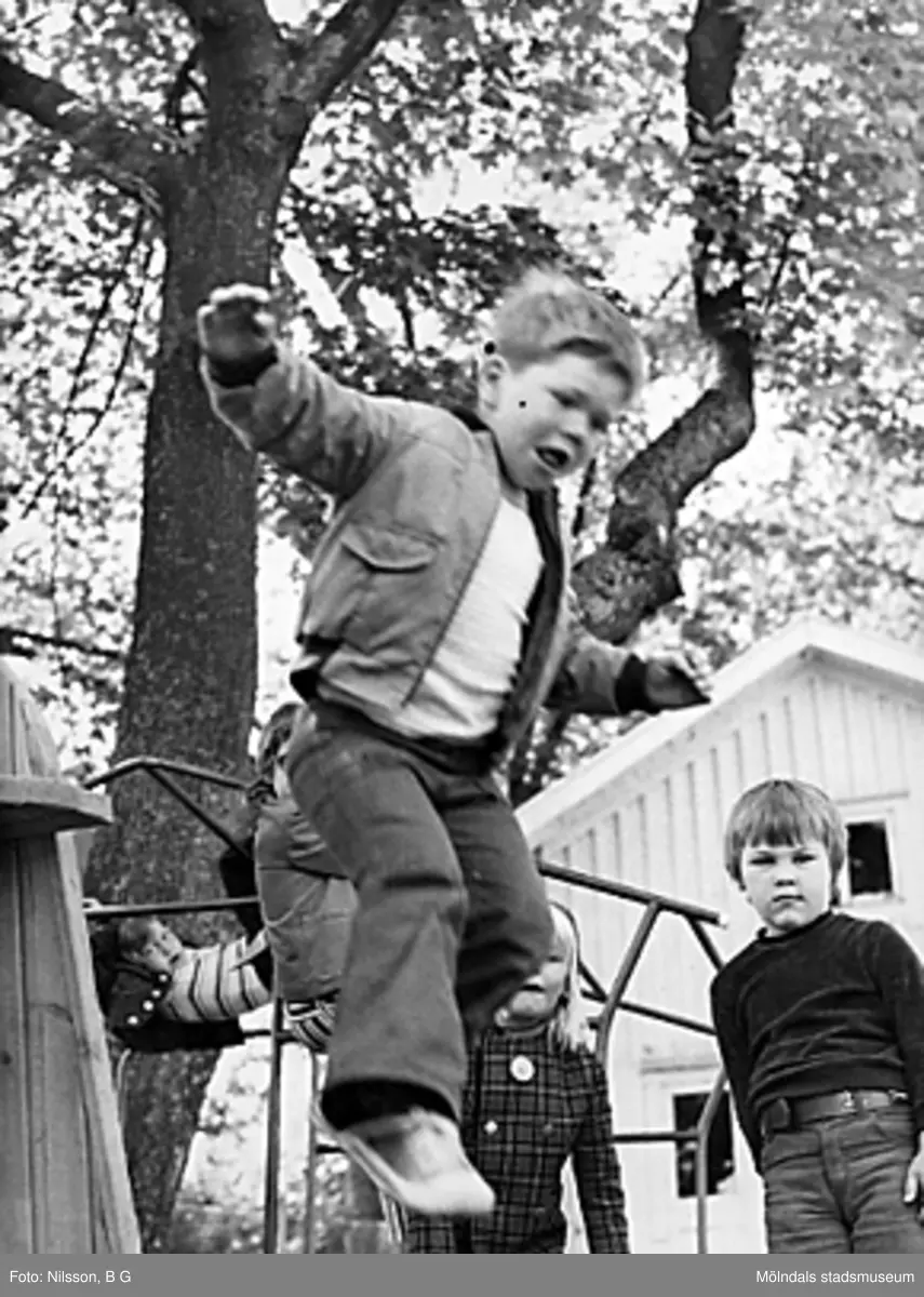 Barn leker vid klätterställning. Holtermanska daghemmet juni 1973.