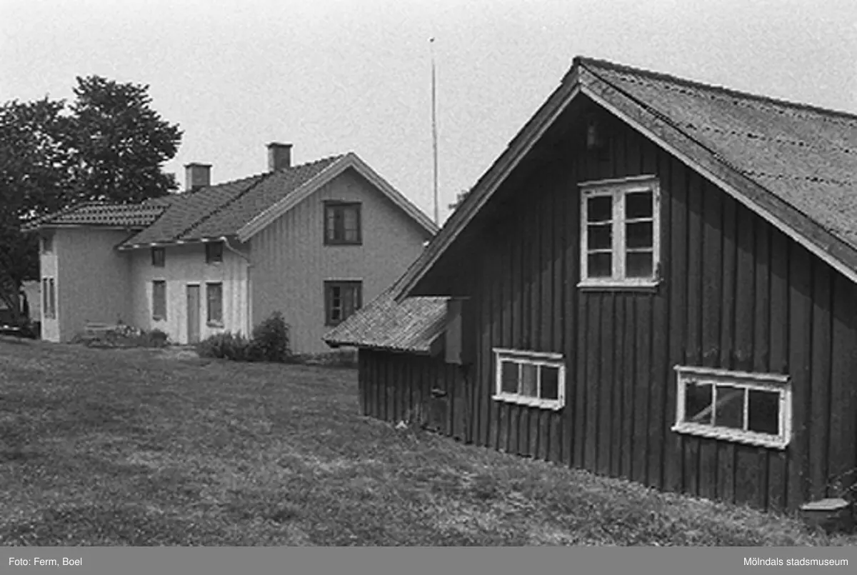 Bostadshuset och ladugården. Hembygdsgården/Börjesgården i Hällesåker, Lindome 1992-06-29.