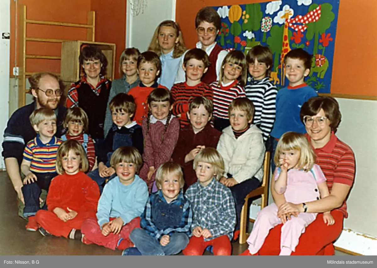 En grupp barn och fem lärare vid Holtermanska daghemmet juni 1983.