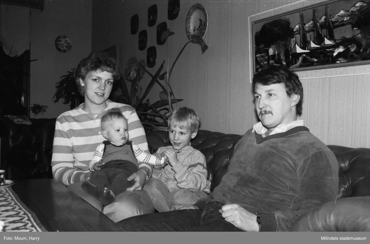 Sexårige Johan Andersson tillsammans med sin familj i bostaden på Högenvägen i Kållered, år 1984. "Johan, den lille livräddaren, hemma hos mamma och pappa samt lillasyster Elin."