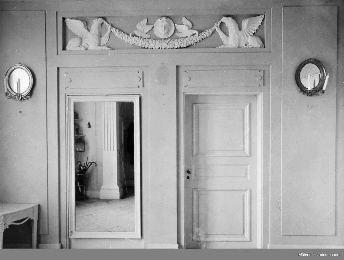 Spegel till vänster och enkeldörr till höger. Gunnebo slott 1930-tal.