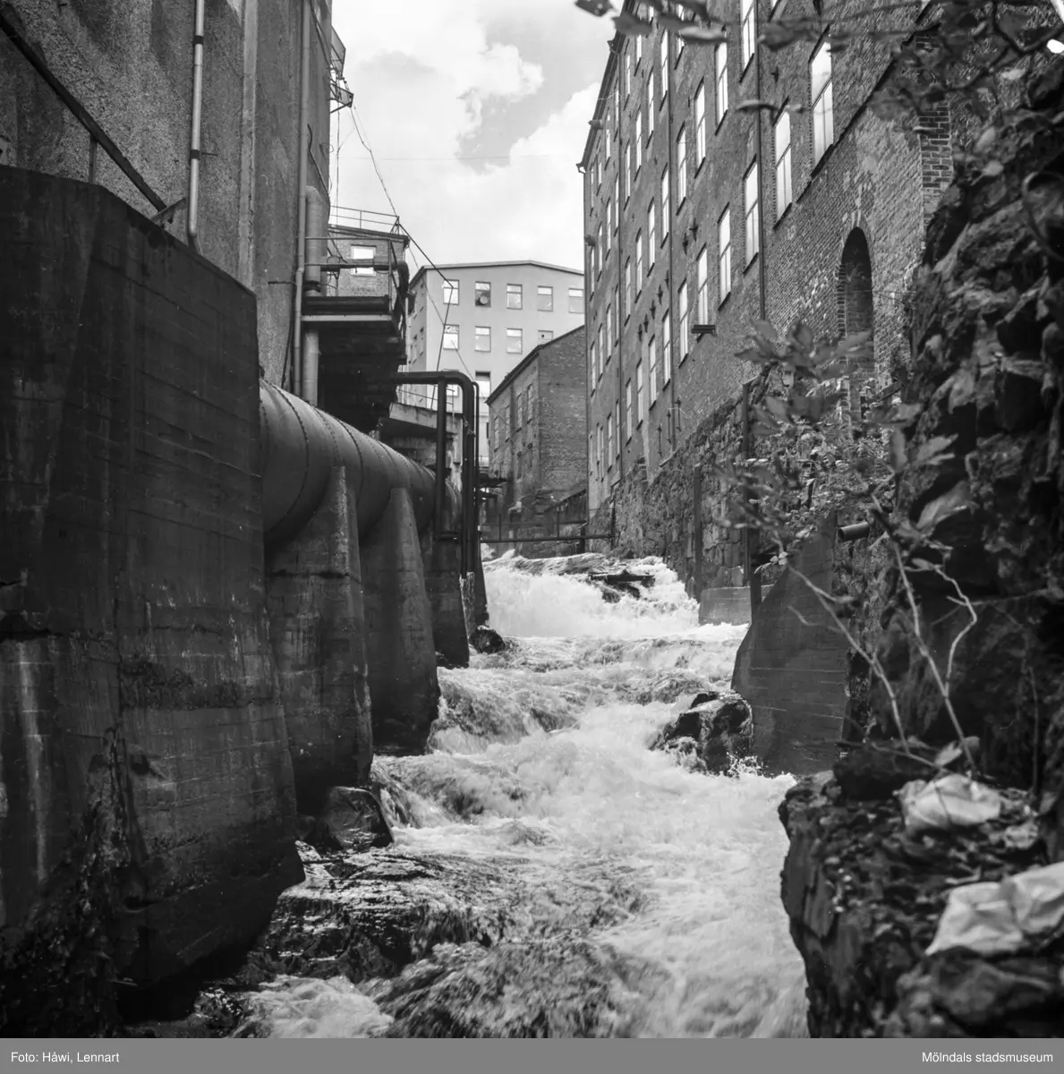 Mölndalsån, uppströms Forsebron i Mölndal, 26/10 1970. Byggnaden närmast till höger är Stora Götafors.