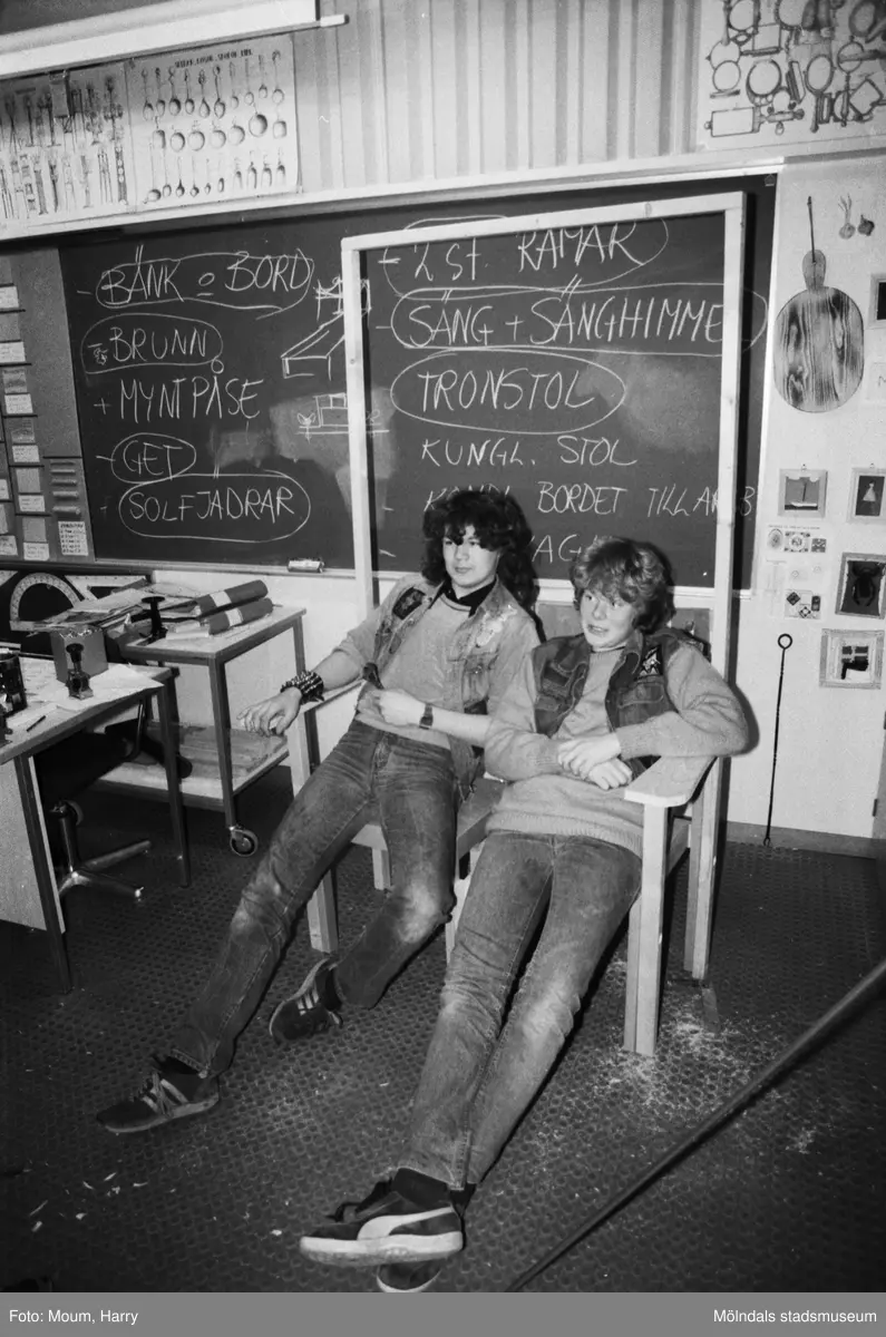 Titel: Temavecka på Ekenskolan i Kållered, år 1984. Rekvisitatillverkning inför musikalen Joseph. För mer information om bilden se under tilläggsinformation.