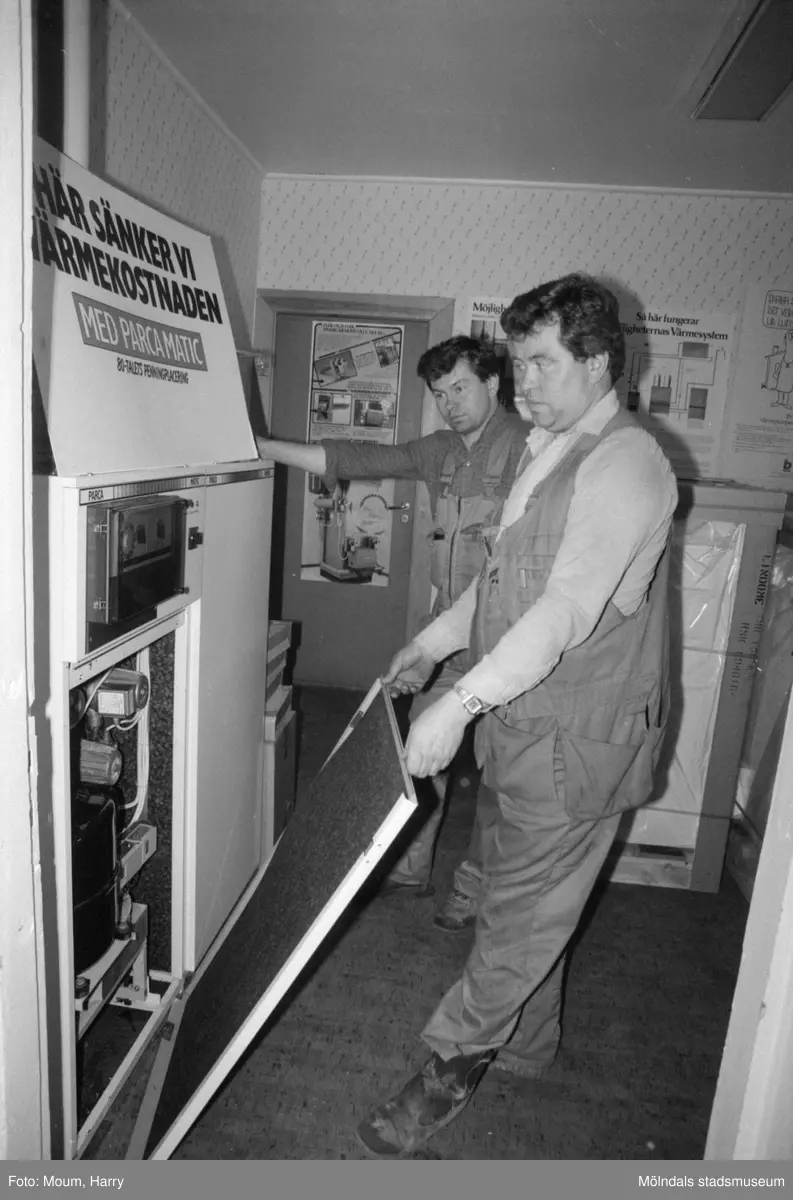 Rörläggningsfirman Stigs rör i Lindome firar 25-årsjubileum, år 1985. Bröderna Roy och Jan Nilsson.
