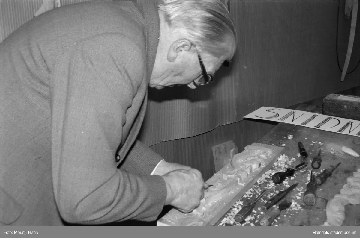 Kulturdagarna på Almåsgården i Lindome, år 1985. Träsnideri.