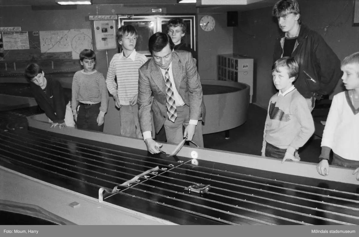 Mölndals Motorklubb återinviger sin miniracingbana i Rävekärr, Mölndal, år 1983. "Rallyföraren Tom Trana var med på återinvigningen i Rävekärr."