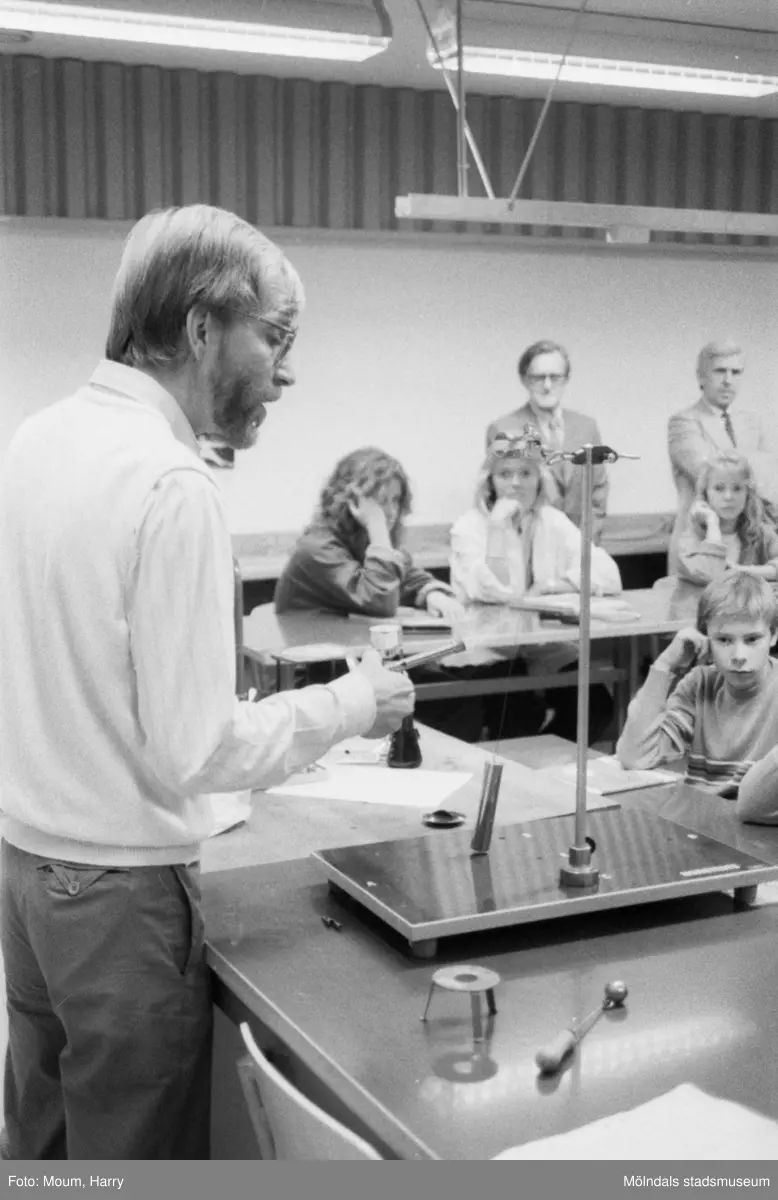 Öppet hus på Ekenskolan i Kållered, år 1984. "Kent Olausson undervisar i värmelära och belyser teoriernas innebörd."