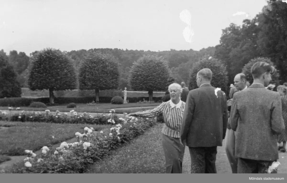 Stort trädgårdsarkitektmöte i Göteborg 1939. Hilda Spare visar runt i Gunnebo slottsträdgård vid besök av arkitekterna.