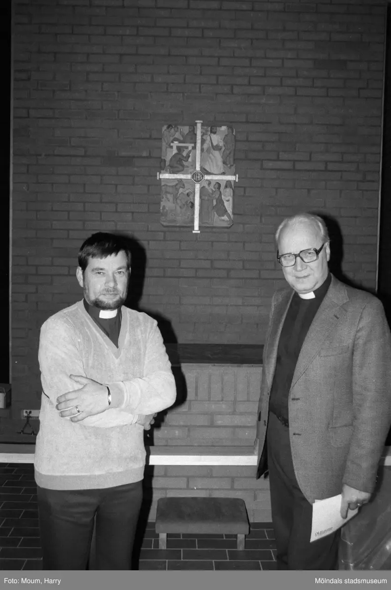Nybyggda Fågelbergskyrkan i Rävekärr, Mölndal, år 1984. Jan Merje och Olof Dotevall.