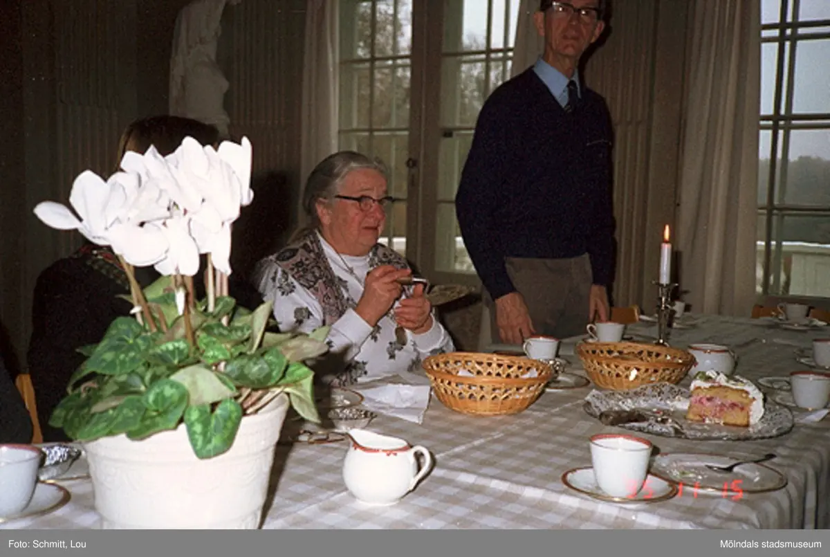 Avtackning av Johan och Anna-Greta Ryhag. De hade deltagit som frivilligarbetare i utgrävningarna på Gunnebo slott under ledning av arkeolog Lou Schmitt.