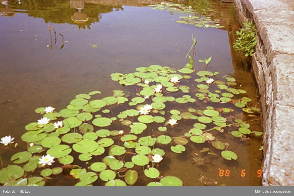 Vita näckrosor i dammen vid Gunnebo slott.
