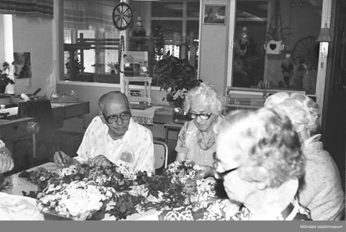 Titel: Blomsterbindning på Lackarebäckshemmet, okänt årtal.
