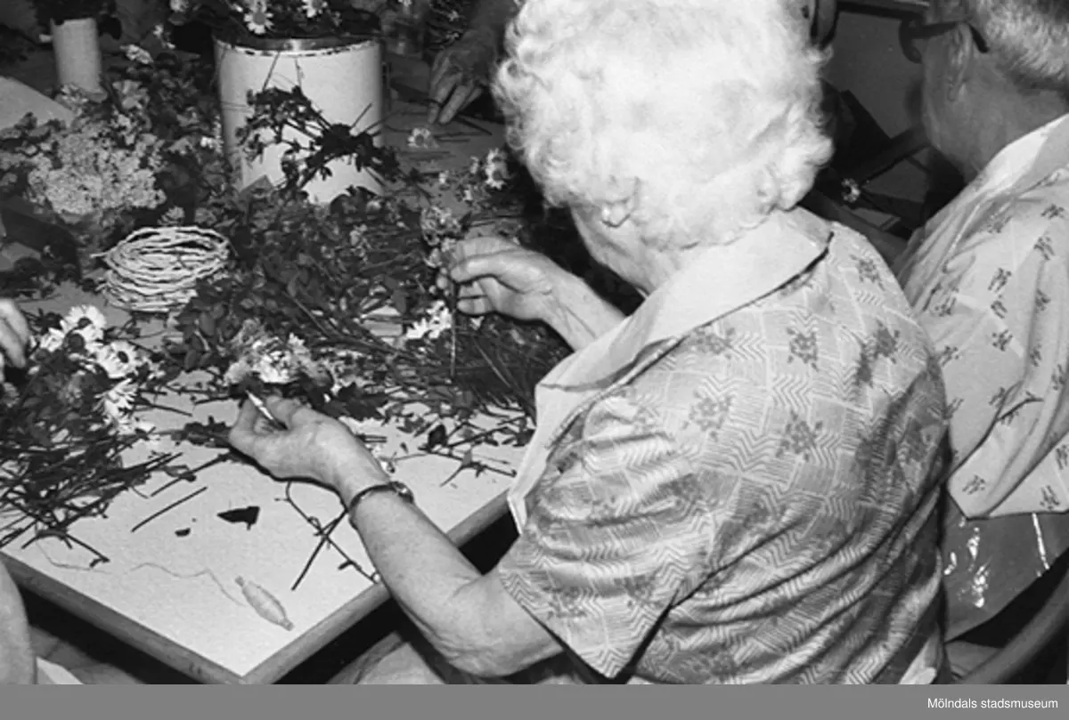 Titel: Blomsterbindning på Lackarebäckshemmet, okänt årtal.