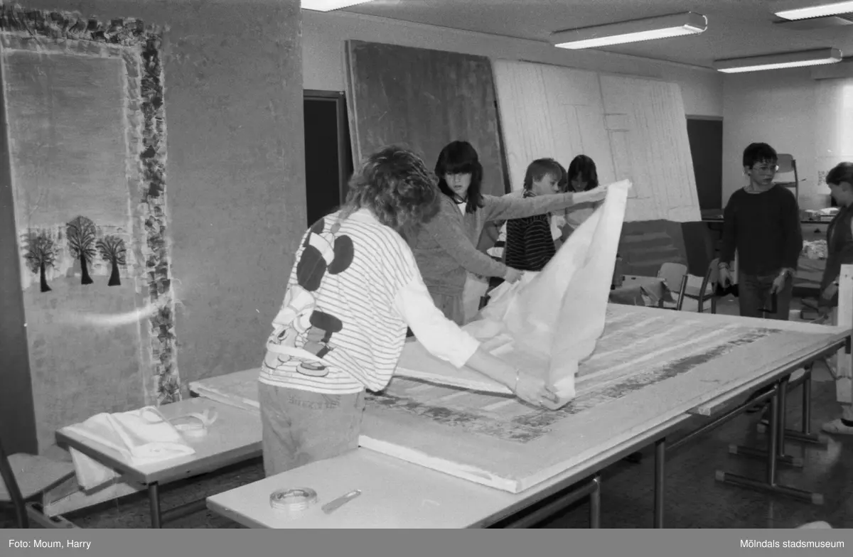 Temavecka på Ekenskolan i Kållered, år 1984. Rekvisitatillverkning inför musikalen Joseph.