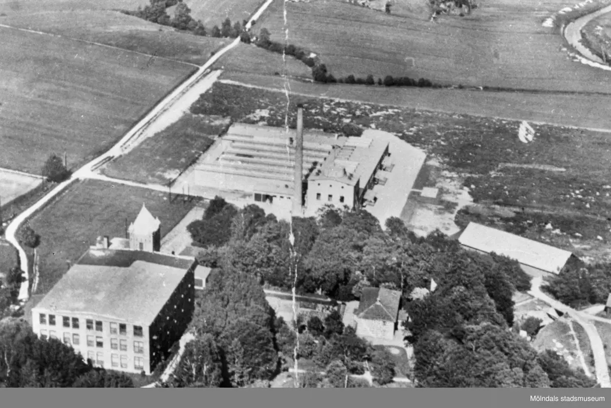 Flygfoto över Anderstorps fabriks spinneri och Eriksbergs färgeri, 1940-talet.