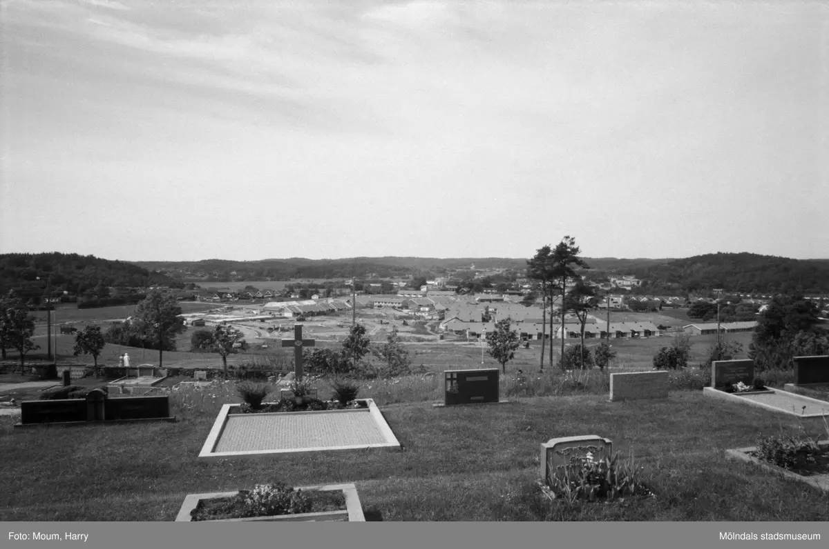 Konfirmander 50-årsjubilerar vid Lindome kyrka, år 1984. Vy från kyrkan mot Kyrkängen.