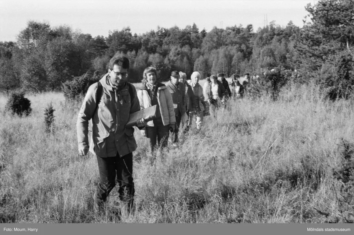 Kållereds hembygdsgille anordnar vandring till Tårås mad i Kållered, år 1983. "Staffan Bjerrhede leder hembygdsgillets vandring i Kållered."