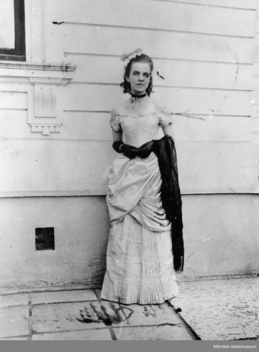 Fröken Ekman i en dräkt från 1878. Gunnebo slott den 15 september 1923.