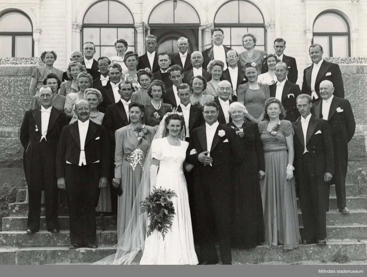 Bröllop mellan Edit och Åke Melin. Fotograferat utanför Slottsvikens pensionat.