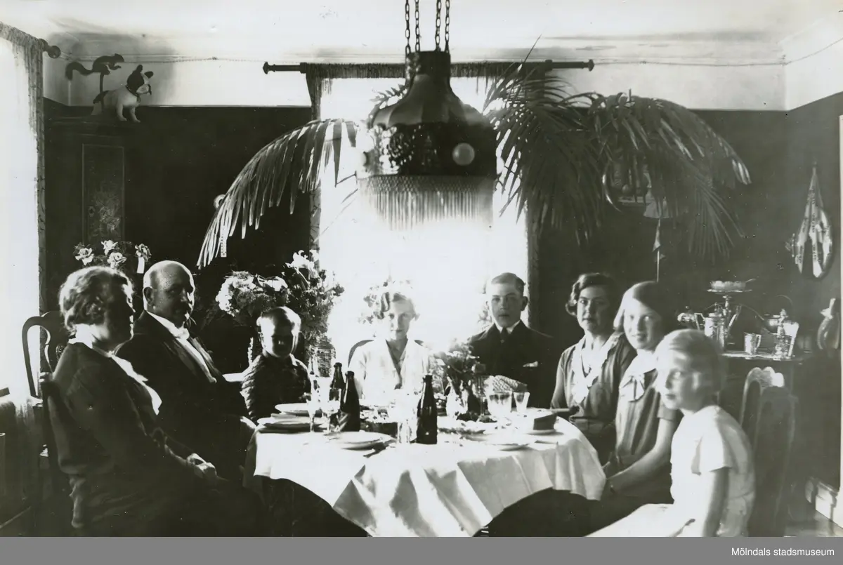 "Lite mat smakade gott efter nattvarden. Tant Alma, pappa, jag, Frits, mamma, Sonja å Marianne."
