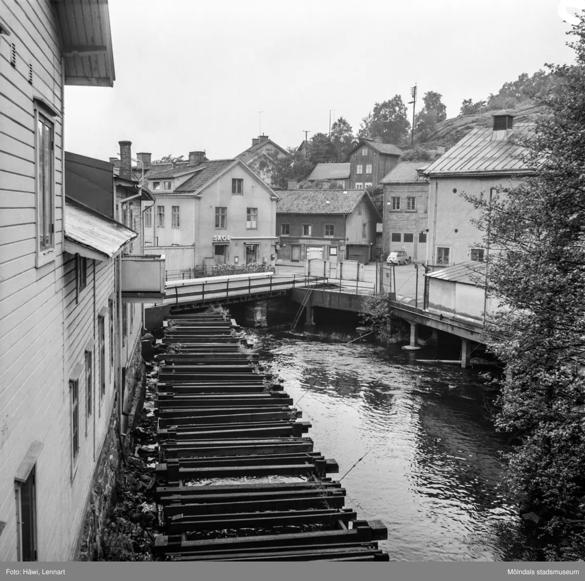 Mölndalsån, uppströms Forsebron. Mölndal, 1/6 1961.